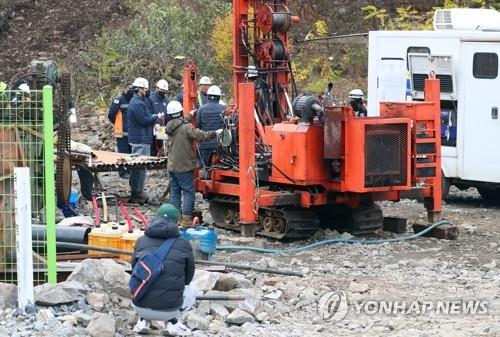 The pair had been stuck in a vertical shaft about 190 meters underground at a zinc mine in the county of Bonghwa, 244 kilometers southeast of Seoul, since the mine collapsed on Oct. 26.