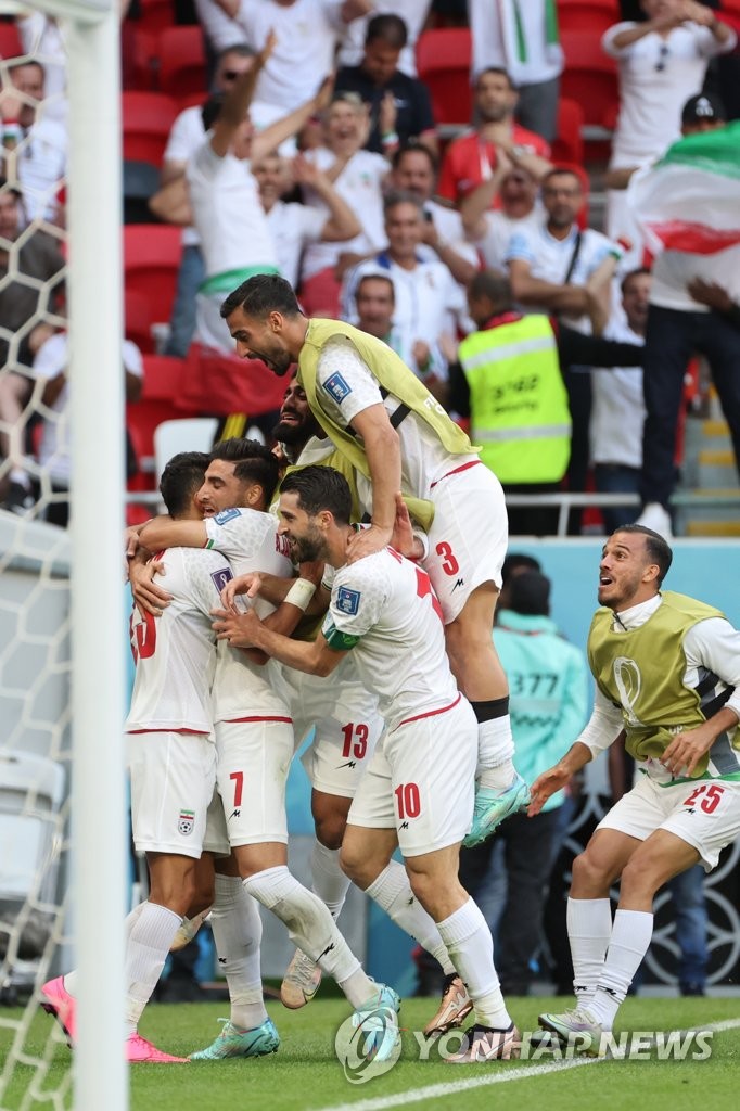 | ▲ 환호하는 이란 선수들 (알라이얀=연합뉴스) 김주성 기자 = 25일 오후(현지시간) 카타르 알라이이얀 아흐마드 빈 알리 스타디움에서 열린 2022 카타르 월드컵 조별리그 B조 2차전 웨일스 대 이란 경기. 두 번째 골을 넣은 이란의 라민 레자이안이 선수들과 환호하고 있다. 2022.11.25 utzza@yna.co.kr |