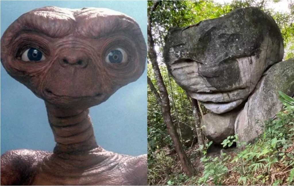 | ▲ 영화 속 'ET'(왼쪽)와 브라질의 'ET 닮은 바위' [브라질 인터넷 매체 G1 캡처. 재판매 및 DB 금지] |