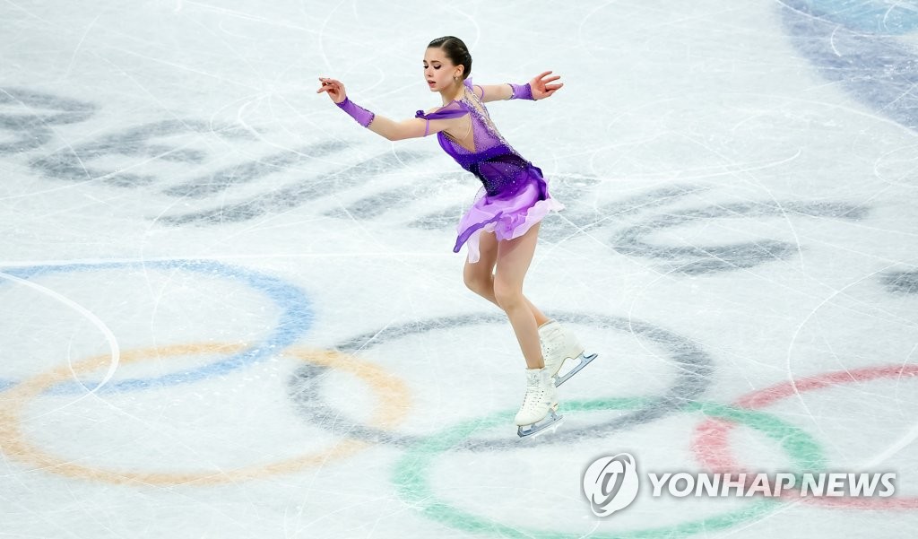 | ▲ [올림픽] 은반 위에 선 '도핑 파문' 발리예바 (베이징=연합뉴스) 김도훈 기자 = 러시아올림픽위원회(ROC)의 카밀라 발리예바가 15일 오후 중국 베이징 캐피털 실내경기장에서 열린 2022 베이징 동계올림픽 피겨스케이팅 여자 싱글 쇼트 프로그램에 출전해 키릴 리히터의 '인 메모리엄' 음악에 맞춰 연기를 펼치고 있다. 2022.2.15 superdoo82@yna.co.kr |