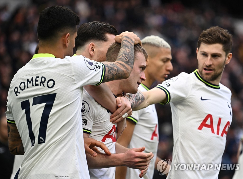 | ▲ 동료들과 토트넘 데뷔골의 기쁨 나누는 스킵 [로이터=연합뉴스] |