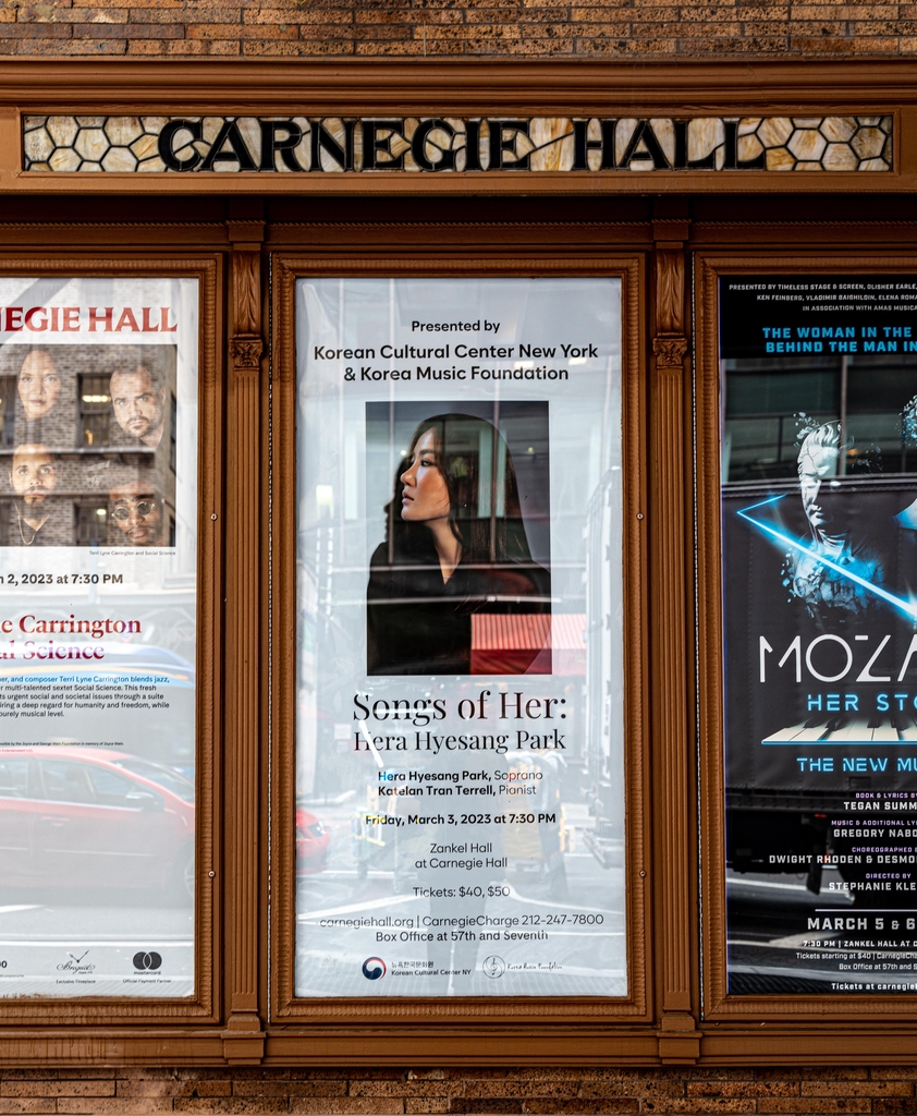 | ▲ 카네기홀에 걸린 박혜상 단독 리사이틀 포스터 [뉴욕문화원 제공] |