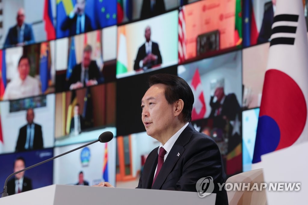 | ▲ President Yoon Suk Yeol delivers remarks during the first plenary session of the Summit for Democracy via video links from the former presidential compound of Cheong Wa Dae in Seoul on March 29, 2023, in this photo provided by the presidential office. (PHOTO NOT FOR SALE) (Yonhap) |