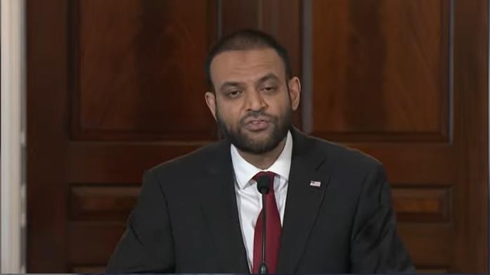 | ▲ Rashad Hussain, ambassador-at-large for international religious freedom, is seen speaking during a press conference at the state department in Washington on May 15, 2023 in this captured image. (Yonhap) |