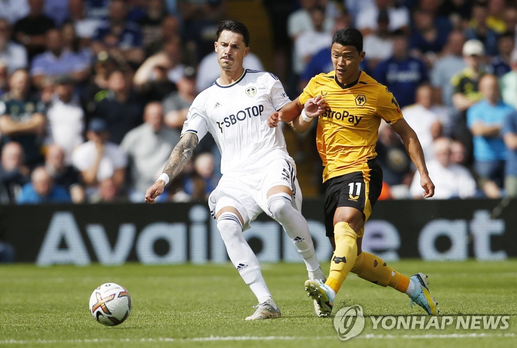| ▲ 울버햄프턴 황희찬(오른쪽)이 리즈와 개막전에서 경합하는 모습. [로이터=연합뉴스] |