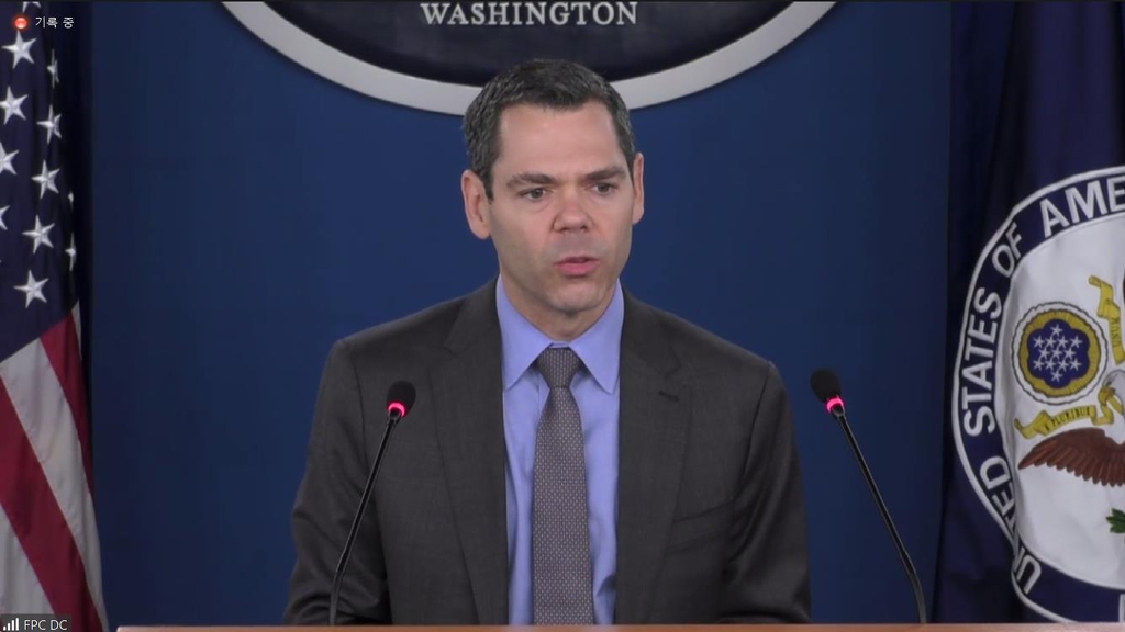 ▲ Robert Berschinski, NSC senior director for democracy and human rights, is seen speaking during a press briefing hosted by the Foreign Press Club in Washington on March 22, 2023 in this captured image. (Yonhap)