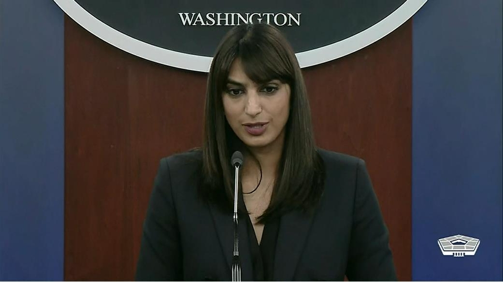| ▲ Sabrina Singh, deputy spokesperson for the Department of Defense, is seen answering questions during a daily press briefing at the Pentagon in Washington on Oct. 28, 2022 in this image captured from the department's website. (Yonhap) |