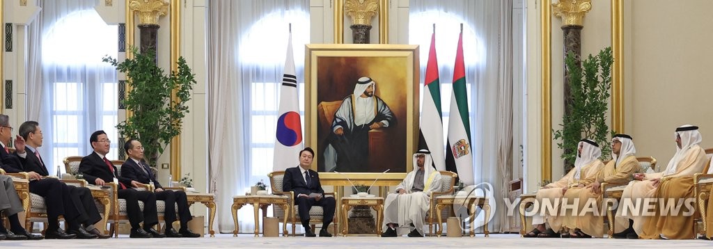 ABU DHABI, Jan. 16 (Yonhap) -- President Yoon Suk Yeol and UAE President Mohamed bin Zayed Al Nahyan adopted a joint summit statement that included an expression of the UAE's commitment to investing US$30 billion in South Korea, the document showed Monday.