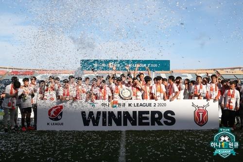 Jeju United will be promoted to the K League 1 next year after clinching the K League 2 title on Sunday with one match remaining. Teams ranked second, third and fourth in the K League 2 will battle in two rounds of the promotion playoffs for one final promotion spot later this month.