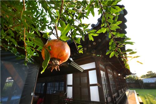 | ▲ 학인당 정원 한가운데 붉게 익어가는 석류 [사진/전수영 기자] |