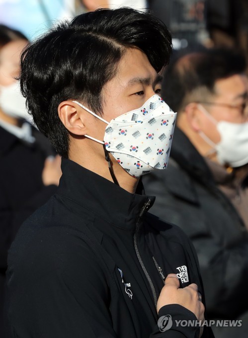 | ▲ 양학선, 마스크도 태극기 (진천=연합뉴스) 최재구 기자 = 10일 충북 진천군 진천선수촌에서 열린 대한민국 체육 100년 기념 타임캡슐 매설식에서 체조 국가대표 양학선이 태극기 마스크를 쓰고 국기에 경례하고 있다. 2020.11.10 jjaeck9@yna.co.kr |