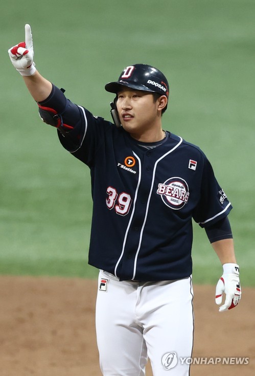 (서울=연합뉴스) 김경윤 기자 = 대타로 나와 결승타를 터뜨린 두산 베어스 김인태(26)는 "지난해 한국시리즈(KS)에서 경험한 한 타석이 큰 도움이 됐다"고 밝혔다.
