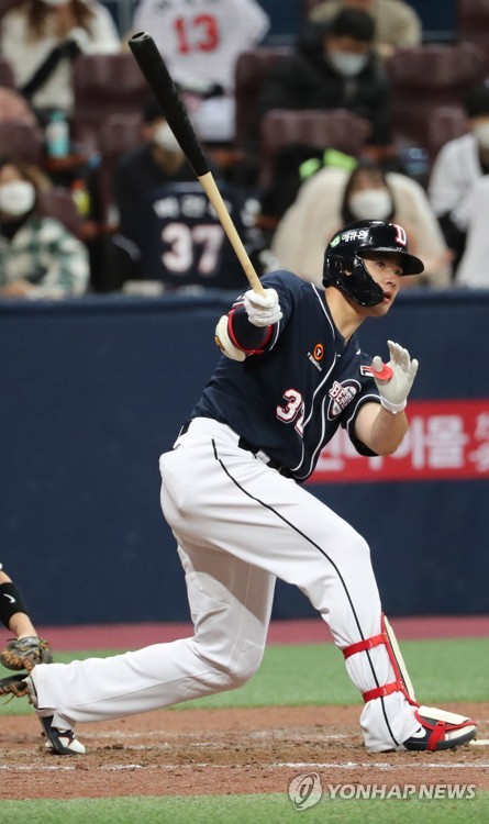 Then facing closer Kim Jae-yoon, Kim Jae-hwan lined a single to right field to put the Bears ahead 1-0. Heo immediately doubled the lead with a single to center.