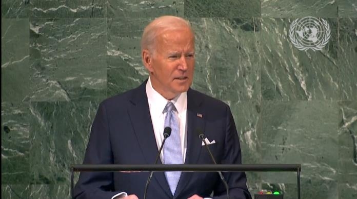 | ▲ U.S. President Joe Biden is seen addressing the U.N. General Assembly in New York on Sept. 21, 2022 in this image captured from the website of the world body. (PHOTO NOT FOR SALE) (Yonhap) |