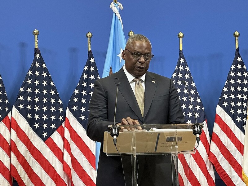 | ▲ U.S. Defense Secretary Lloyd Austin speaks during a press conference on the margins of a defense ministerial meeting of the North Atlantic Treaty Organization in Brussels on Oct. 11, 2023. (Yonhap) |