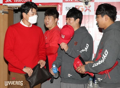 (서울=연합뉴스) 김경윤 기자 = 미국 프로야구 메이저리그 데뷔 시즌을 성공적으로 마친 김광현(32·세인트루이스 카디널스)이 기자회견 이후 소화한 두 번째 일정은 '친정팀' 방문이었다.