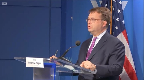| ▲ Edgard Kagan, special assistant to the president and senior director for East Asia and Oceania at the National Security Council, is seen answering questions in a seminar hosted by the Wilson Center in Washington on May 26, 2022 in this image captured from the website of the Washington-based think tank. (PHOTO NOT FOR SALE) (Yonhap) |