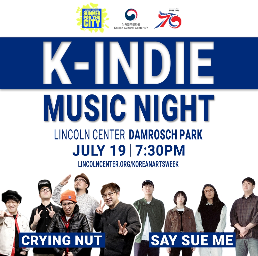 뉴욕한국문화원은 오는 19일과 20일 저녁 7시30분 링컨센터와 공동으로 'K-인디 뮤직 나이트' 공연을 개최한다고 10일(현지시간) 밝혔다.