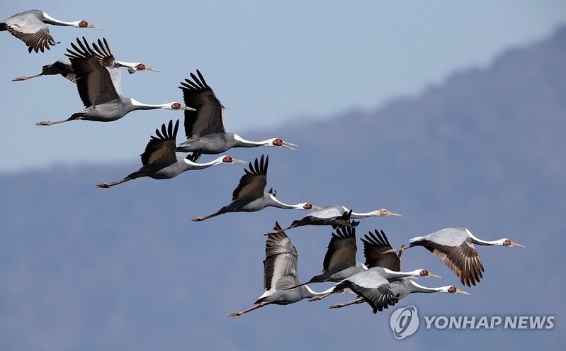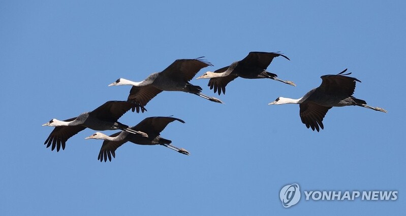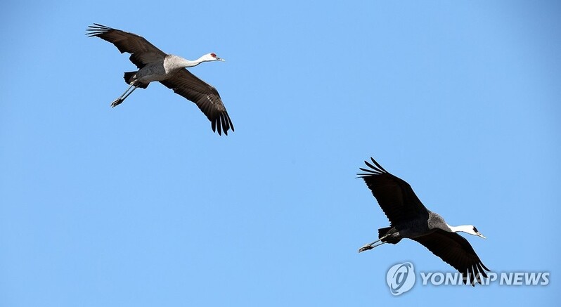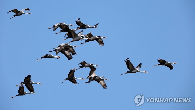 (창원=연합뉴스) 김동민 기자 = 재두루미, 검은목두루미, 흑두루미, 캐나다두루미 등 겨울 철새가 지난 19일 국내 대표 철새도래지인 경남 창원시 의창구 동읍 주남저수지 일대에서 비행하고 있다.