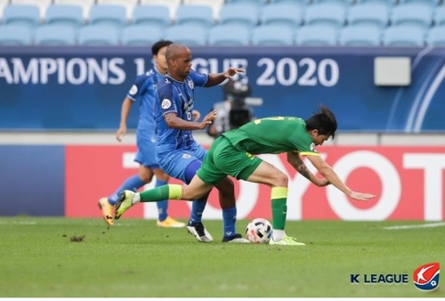 | ▲ 울산 주니오가 베이징 김민재와 공을 다투는 모습. [한국프로축구연맹 제공. 재판매 및 DB 금지] |