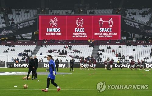 | ▲ 영국 프리미어리그 경기장에 걸린 코로나19 안전 표지판 [AP=연합뉴스 자료사진. 재판매 및 DB 금지] |