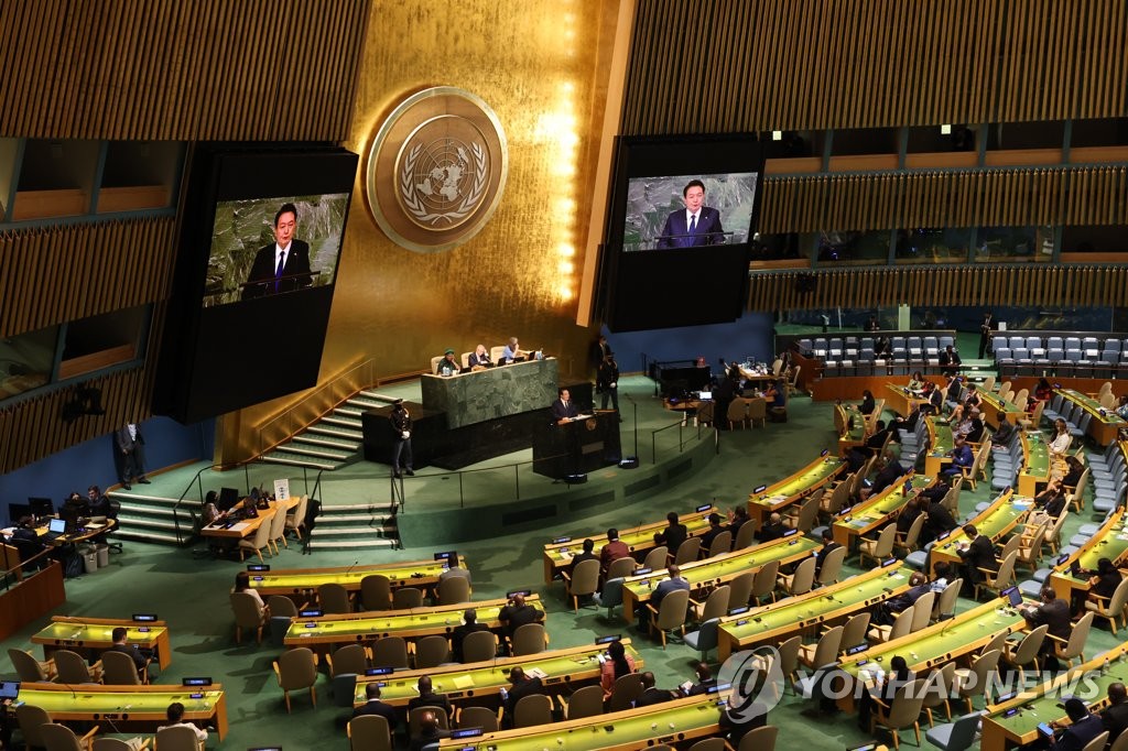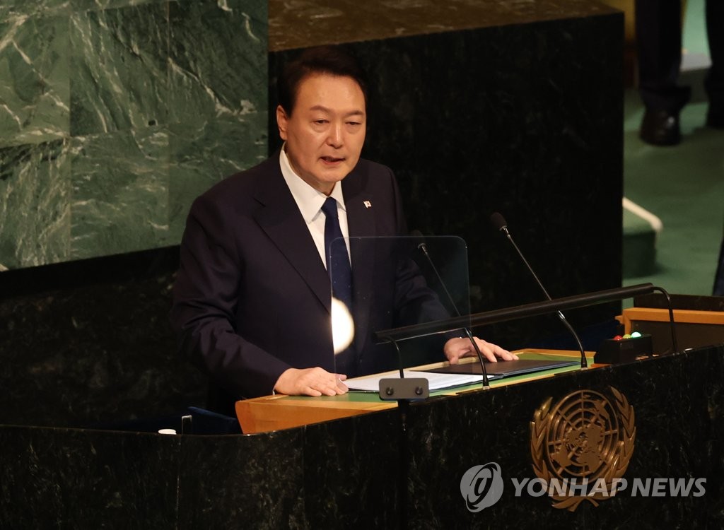 Yoon made the appeal in his first address to the U.N. General Assembly in New York, as he outlined his vision for South Korea's increased role in the global community and acknowledged the support it received from the U.N.