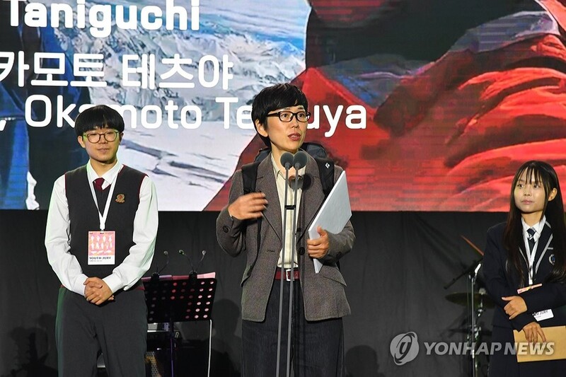 ▲ 울산울주산악영화제 아시아경쟁 넷팩상 (울산=연합뉴스) 장영은 기자 = 26∼30일 울산 울주군에서 열린 국내 유일 국제산악영화제인 제10회 울산울주세계산악영화제의 아시아경쟁 넷팩상은 '다니구치 케이의 선물'이 받았다. 넷팩상은 아시아영화진흥기구인 넷팩(The Network for the Promotion of Asian Cinema, NETPAC)이 아시아 최고영화 작품에 수여하는 상이다. 30일 시상식에서 토자와 토시코 감독이 수상 소감을 이야기 하고 있다. 2025.9.30 young@yna.co.kr