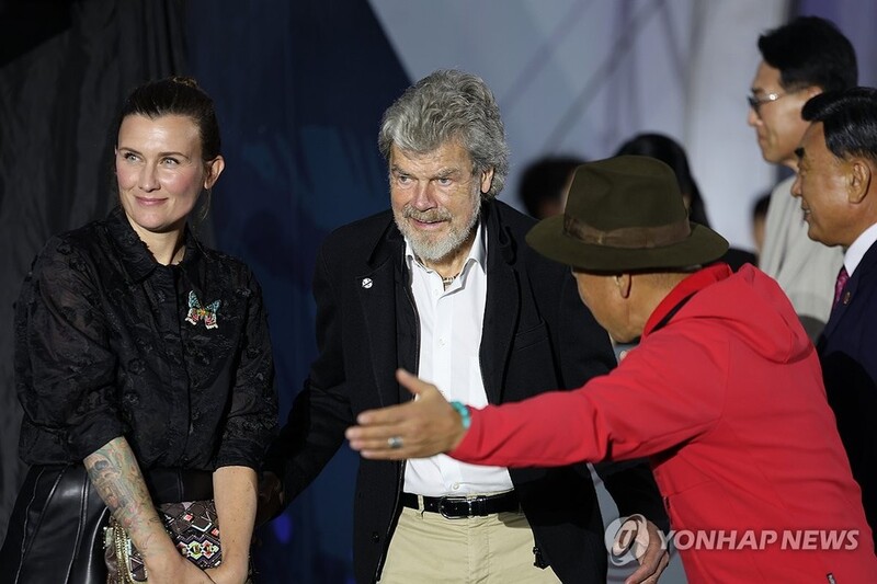 | ▲ 그린카펫 오르는 라인홀트 메스너 (울산=연합뉴스) 장지현 기자 = 26일 오후 울산시 울주군 영남알프스 복합웰컴센터에서 열린 '제10회 울산울주세계산악영화제' 개막식 그린카펫 행사에서 세계적 산악인 라인홀트 메스너가 입장하고 있다. 2025.9.26 jjang23@yna.co.kr |