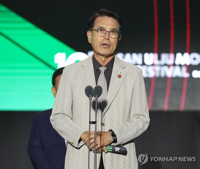 | ▲ 인사말 하는 이순걸 울주군수 (울산=연합뉴스) 장지현 기자 = 26일 오후 울산시 울주군 영남알프스 복합웰컴센터에서 열린 '제10회 울산울주세계산악영화제' 개막식에서 영화제 이사장인 이순걸 울주군수가 인사말 하고 있다. 2025.9.26 jjang23@yna.co.kr |