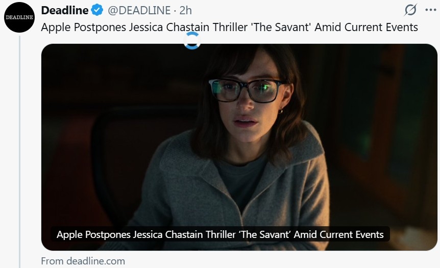 | ▲ 애플TV+의 드라마 방영 연기 소식 전하는 데드라인 기사 [@DEADLINE X 게시물 캡처. 재판매 및 DB 금지] |