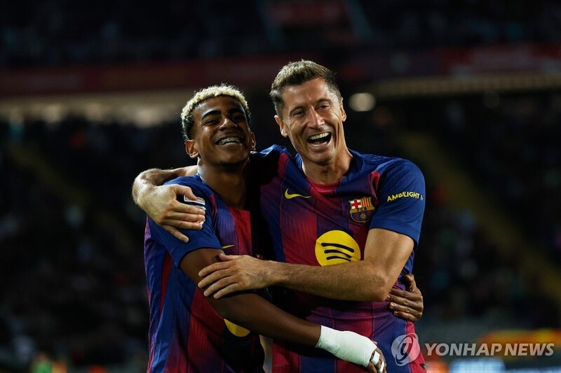(서울=연합뉴스) 안홍석 기자 = 스페인 프로축구 FC바르셀로나가 라민 야말과 로베르트 레반도프스키가 합작한 역전 결승골로 4연승을 내달렸다.