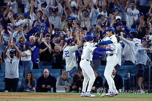 (서울=연합뉴스) 천병혁 기자 = 로스앤젤레스 다저스가 가을 무대에 처음으로 선 김혜성의 끝내기 득점을 앞세워 2년 연속 내셔널리그 챔피언십시리즈(NLCS)에 진출했다.