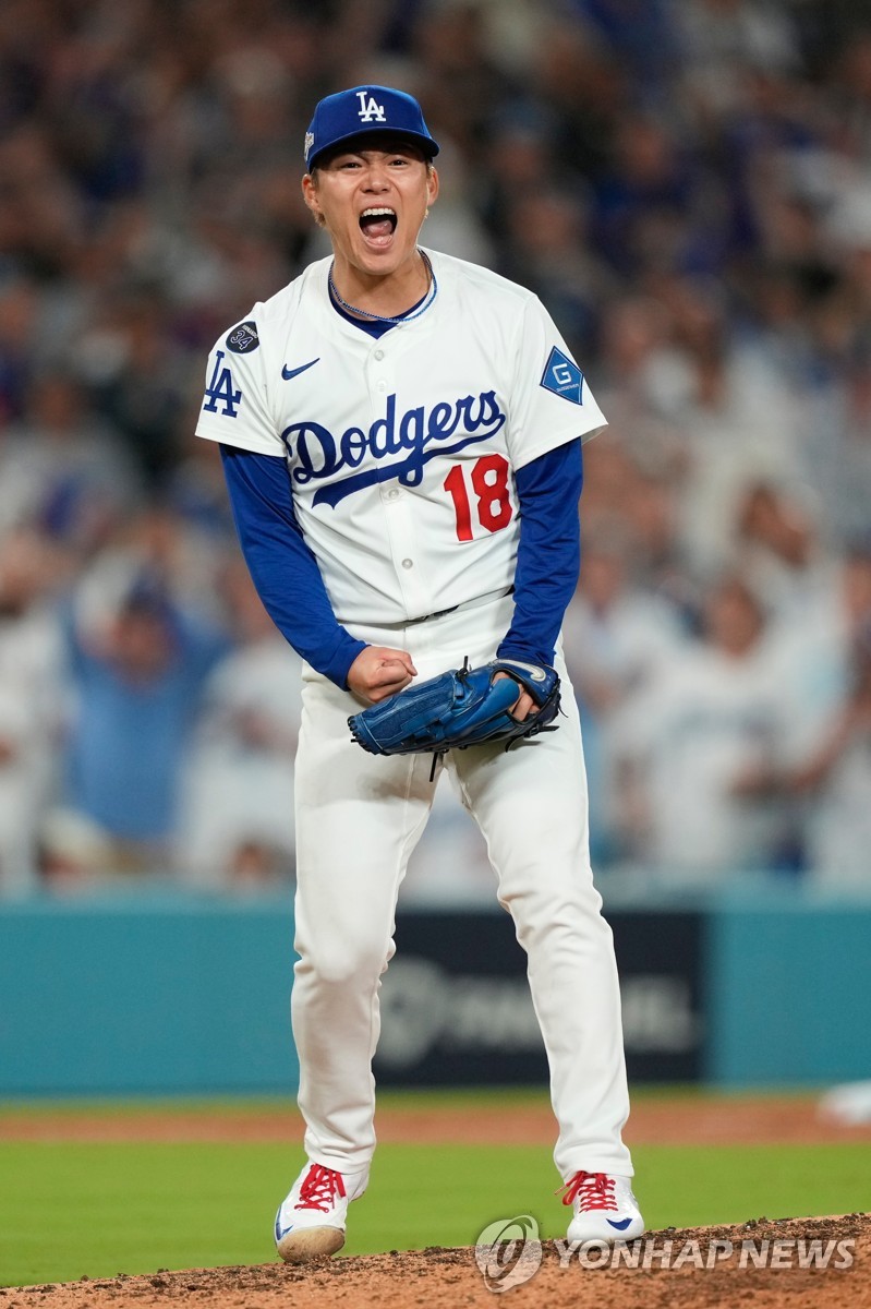 다저스는 9회 사사키 로키를 마운드에 올려 8-4 승리에 마침표를 찍었다.