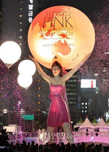 ▲ '셜리 템플을 기억하자' 핑크리본 캠페인 점등식 [연합뉴스 자료사진]