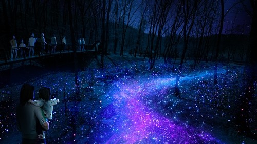 신비로운 연분홍빛 복사꽃이 하늘에 흩날리는 밤을 시작으로 무지개, 장대비, 천둥, 눈과 오로라 등 다양한 빛의 향연이 12개 테마로 나뉘어 펼쳐진다.