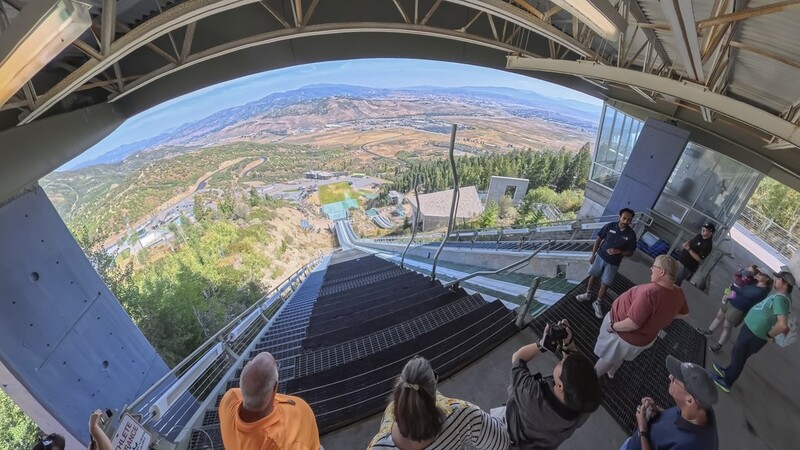 ▲ 유타 올림픽 파크의 스키 활강 시설을 둘러보는 관광객들 [사진/성연재 기자]