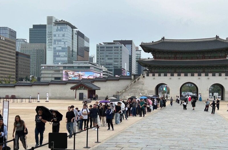 | ▲ 경복궁 입장을 기다리며 (서울=연합뉴스) 김예나 기자 = 3일 서울 종로구 경복궁 흥례문 앞에 관람객들이 입장을 기다리고 있다. 국가유산청은 추석 연휴를 맞아 9일까지 경복궁·창덕궁·덕수궁·창경궁 등 서울의 4대 궁과 종묘, 조선왕릉을 무료로 개방한다. 2025.10.3 yes@yna.co.kr |