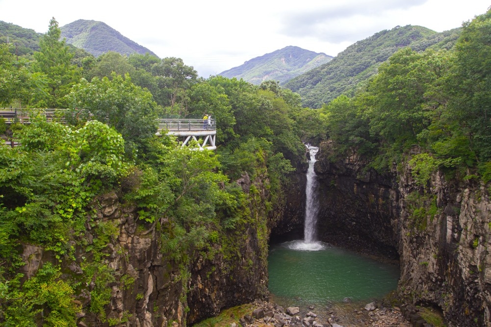 재인폭포는 전망대에서 협곡을 마주하고 감상해도 아름답지만, 출렁다리에서 보는 모습과 데크 길을 따라 폭포 아래에서 보는 모습이 각기 다른 매력이 있다.