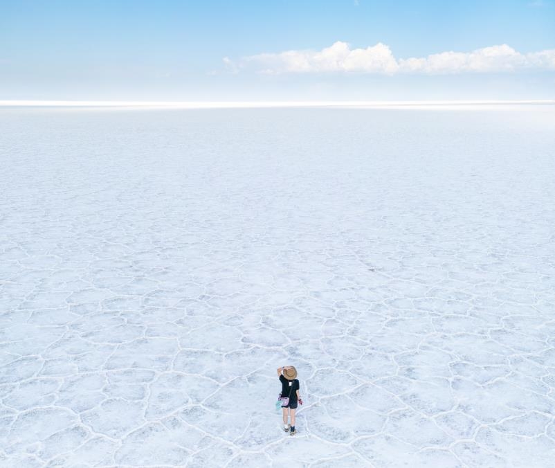 차에서 내리자 발밑에서 '사각사각' 소금이 부서지는 소리가 났다. 땅과 하늘의 경계가 사라진 듯, 지평선 끝까지 하얀 평원이 이어졌다. 햇살은 소금 결정에 반사돼 눈이 부실 정도였고, 바람 한 점 없는 고요 속에서 마치 세상 끝에 서 있는 듯한 기분을 느꼈다.