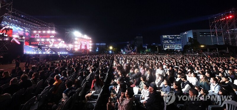 ▲ 2025 창원 K-POP 월드 페스티벌 (창원=연합뉴스) 김동민 기자 = 17일 오후 경남 창원광장에서 열린 '2025 창원 K-POP 월드 페스티벌'에서 축하공연이 펼쳐지고 있다. 2025.10.17 image@yna.co.kr