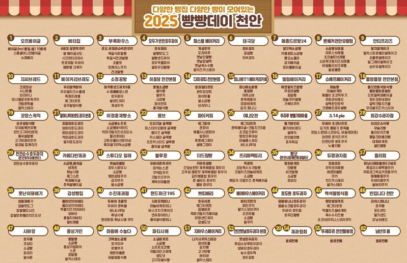 ▲ '2025 빵빵데이 천안' 참여빵집 리스트 [천안시 제공. 재판매 및 DB 금지] |