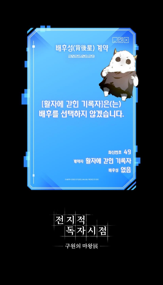 | ▲ '전지적 독자시점: 구원의 마왕 전' (서울=연합뉴스) 김경윤 기자 = 서울 송파구 롯데월드 전시공간 딥에서 열린 '전지적 독자시점: 구원의 마왕 전' 전시 속 QR코드 이벤트. 2025.10.13 heeva@yna.co.kr |