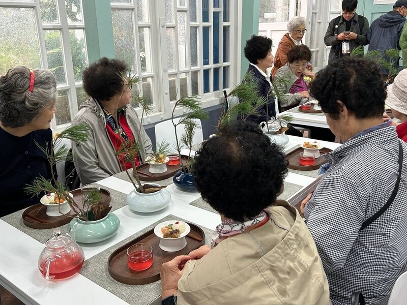 행사에 참여한 어르신들은 한국 꽃꽂이를 가르쳐 온 오흥경 호경재 대표의 설명을 들으면서 소나무, 국화, 난초를 활용한 '반려 화분'을 직접 만들었다.