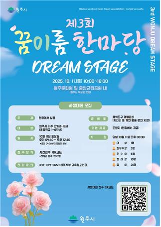 (원주=연합뉴스) 임보연 기자 = 원주시는 오는 11일 원주문화원 일원에서 '제3회 원주시 꿈이룸 한마당'을 개최한다.