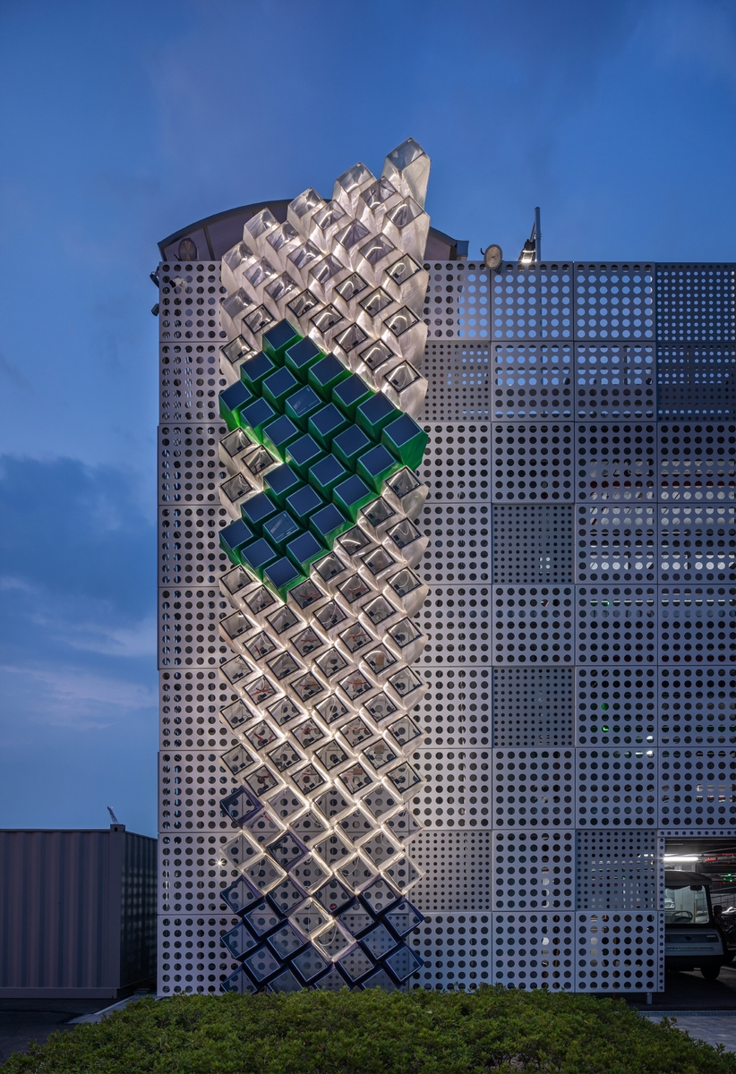 비정형 곡면 구조의 모듈형 태양광 패널을 통해 건축물이 단순한 구조체를 넘어 에너지 생산과 환경 반응, 공간 경험이 융합된 새로운 건축 언어를 구현했다.