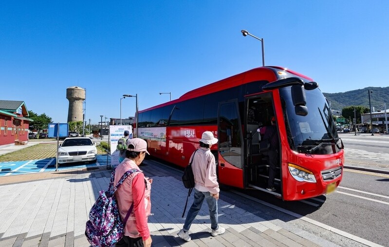 빨간 시티투어 버스는 연천역 관광안내소 앞에서 출발했다.