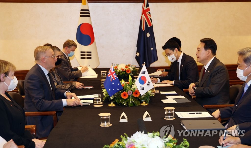 The two leaders' participation in the NATO summit demonstrates South Korea's and Australia's shared principles that include defending democratic values, respecting the sovereignty of all nations and ruling out the use of military force, Yoon's office said in a press release.