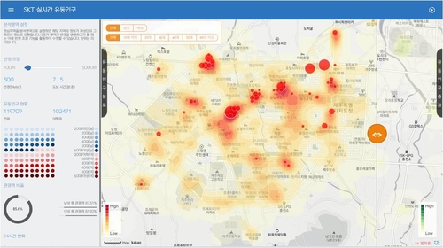 '실시간 관광지 혼잡도 분석 서비스'는 통신사(SKT)의 기지국 데이터를 활용해 도민과 관광객들의 성별, 연령별 지역 분포도를 5분 단위로 업데이트해 제공한다.