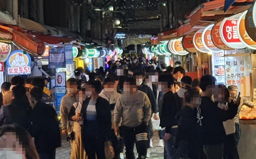 거리두기 단계 완화로 다시 북적…다닥다닥 줄 서고 '턱스크'도