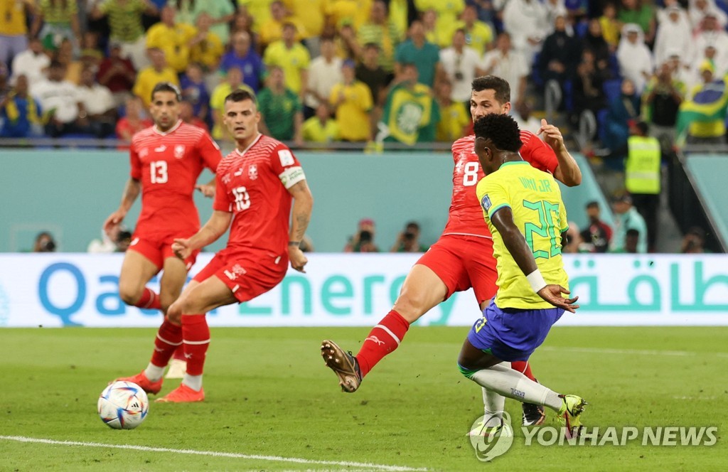 브라질도 후반 11분 비니시우스가 전매특허인 오른발 아웃프런트 킥으로 히샤를리송을 겨냥해 스위스 수비진의 간담을 서늘하게 했다.
